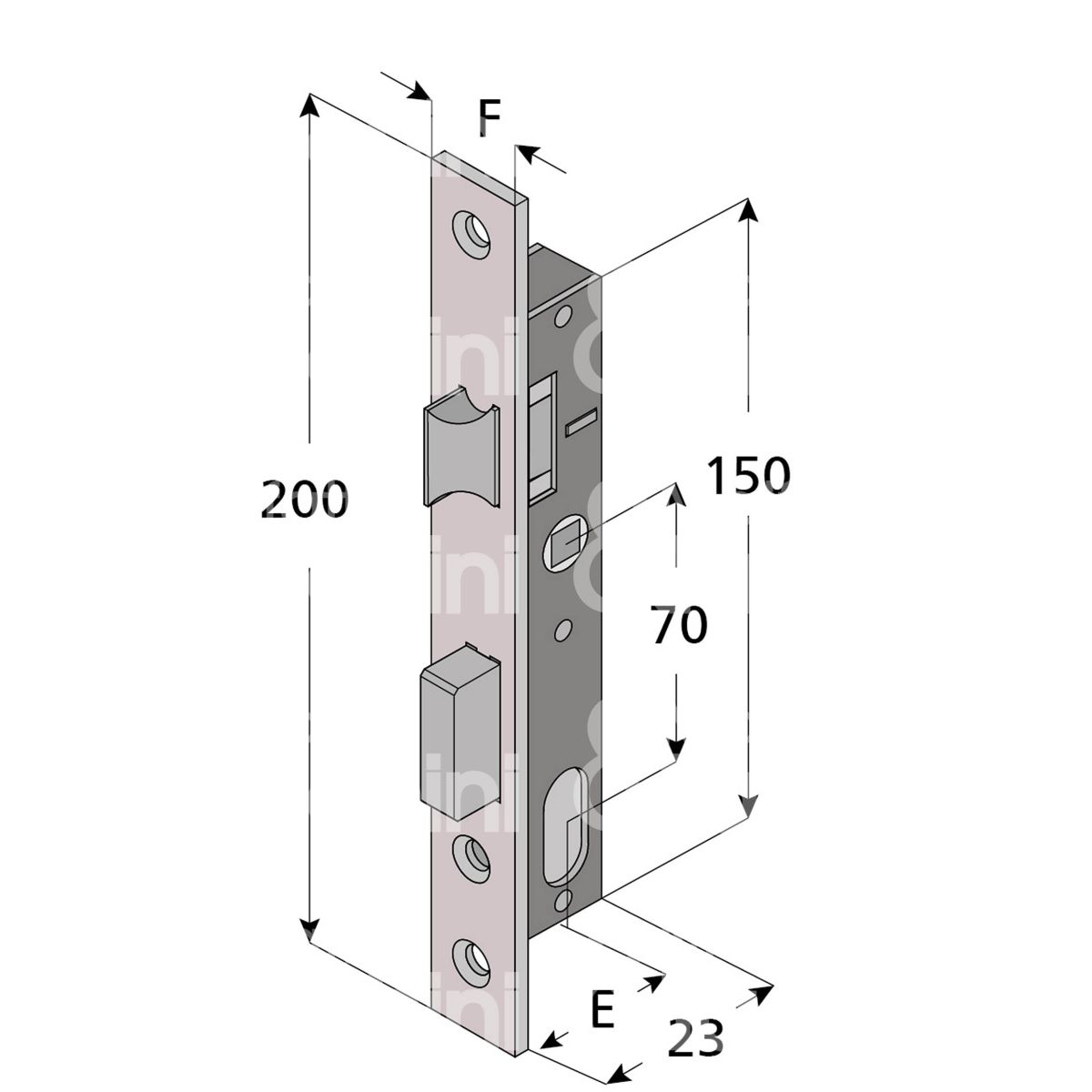 SERRATURA PER MONTANTI 1 mandata e scrocco reversibile cilindro ovale non compreso