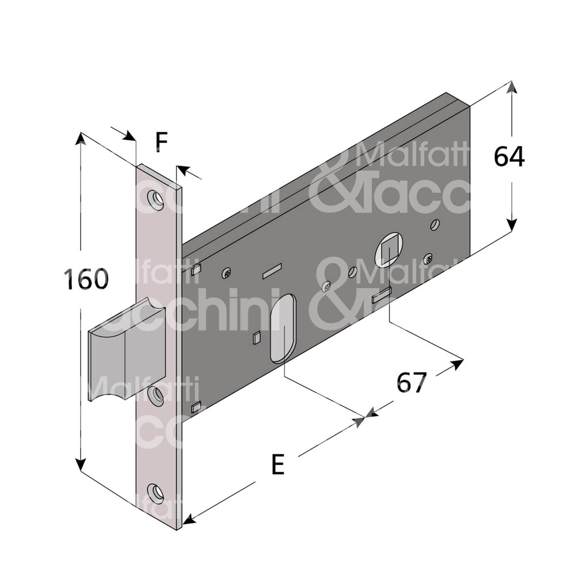 Welka 13360010 serratura infilare per fasce 2 mandate cilindro ovale 60 laterale scrocco con mandata