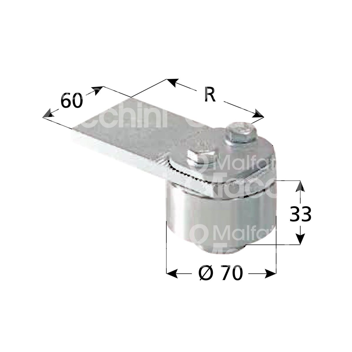 Comunello 86g cardine grande superiore con piastra e cuscinetto art. 86g acciaio zincato regolabile si Ø mm 70 l mm 130 x h mm 60 portata 650 kg