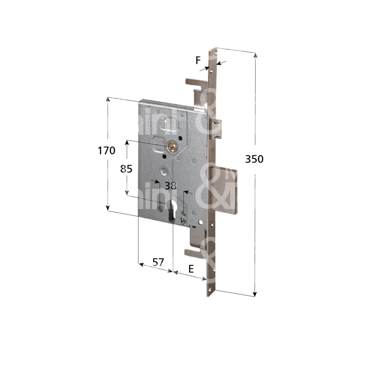 SERRATURA infilare triplice 4 mandate e scrocco predisposta per protettore Contropiastra in dotazione cilindro sagomato non incluso Aste 06415 00 non comprese