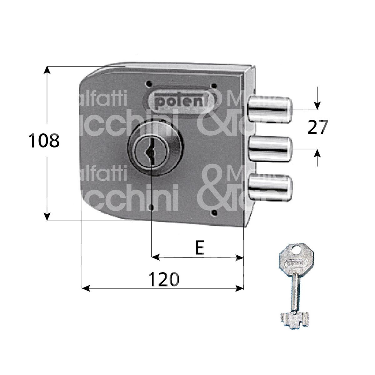 Potent 305/d serratura applicare pompa Ø 30 laterale e 60 3 catenacci int. fiss. a45,5 x b87