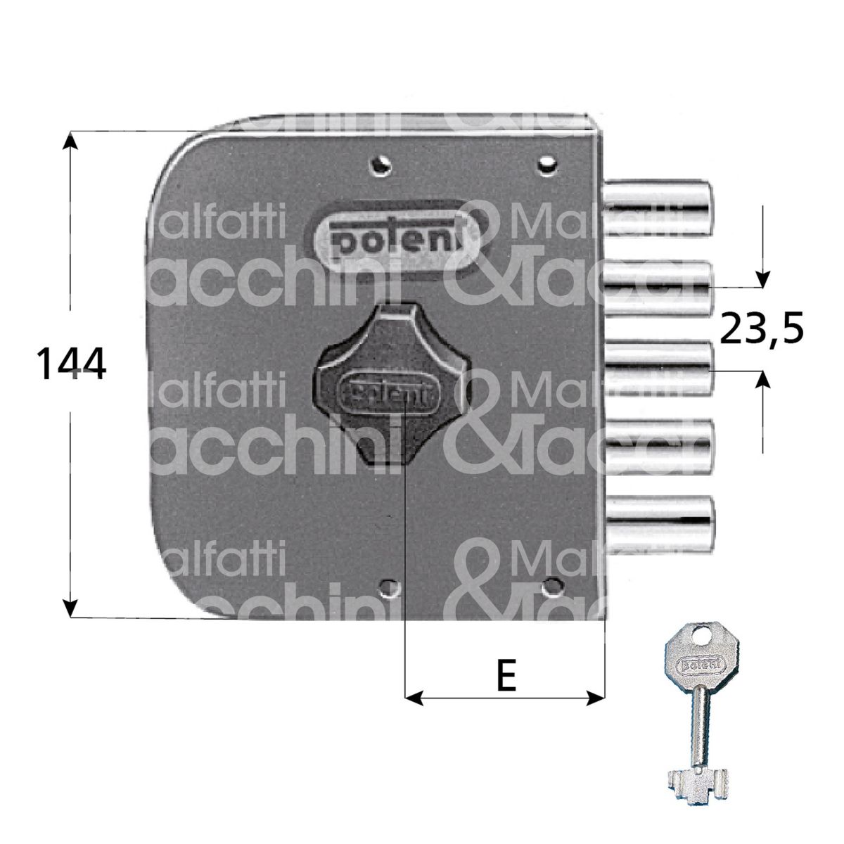 Potent 415/d serratura applicare pompa Ø 30 laterale e 60 5 catenacci int. fiss. a48,5 x b122