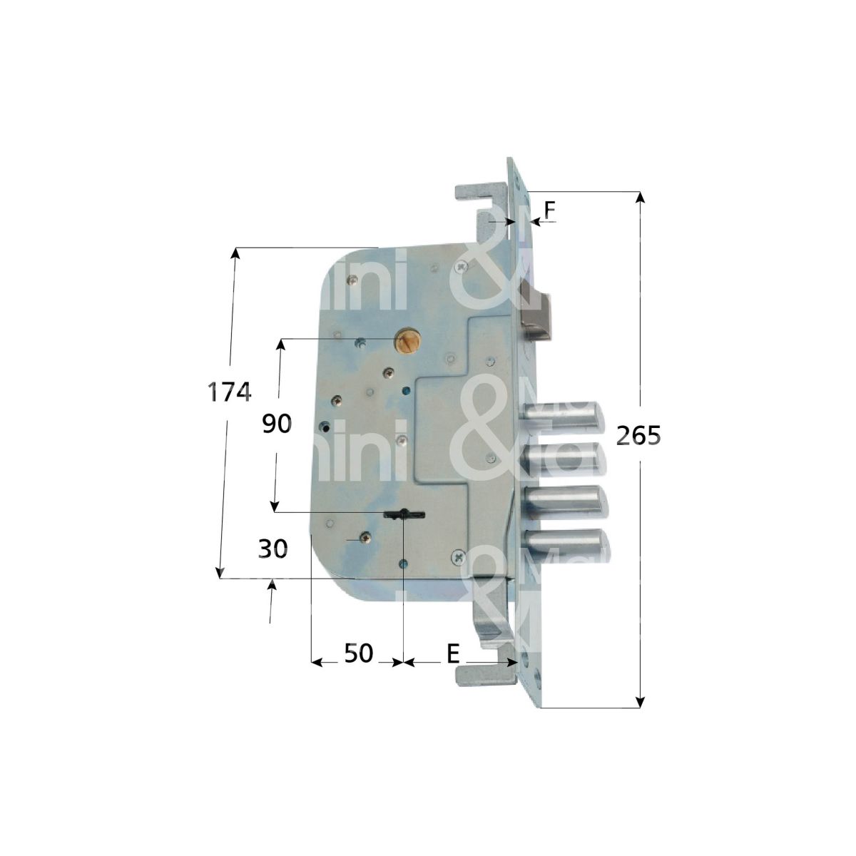 SERRATURA DOPPIA MAPPA Art. 634/3 Infilare Triplice 4 mandate e scrocco catenaccio a pioli Aste non comprese
