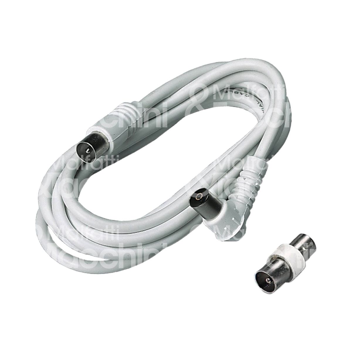 PROLUNGA TV 3 MT Cavo coassiale 75 Ohm Spina diritta e presa a squadra Ø9,5mm Colore bianco Incluso nella confezione adattatore maschio-maschio