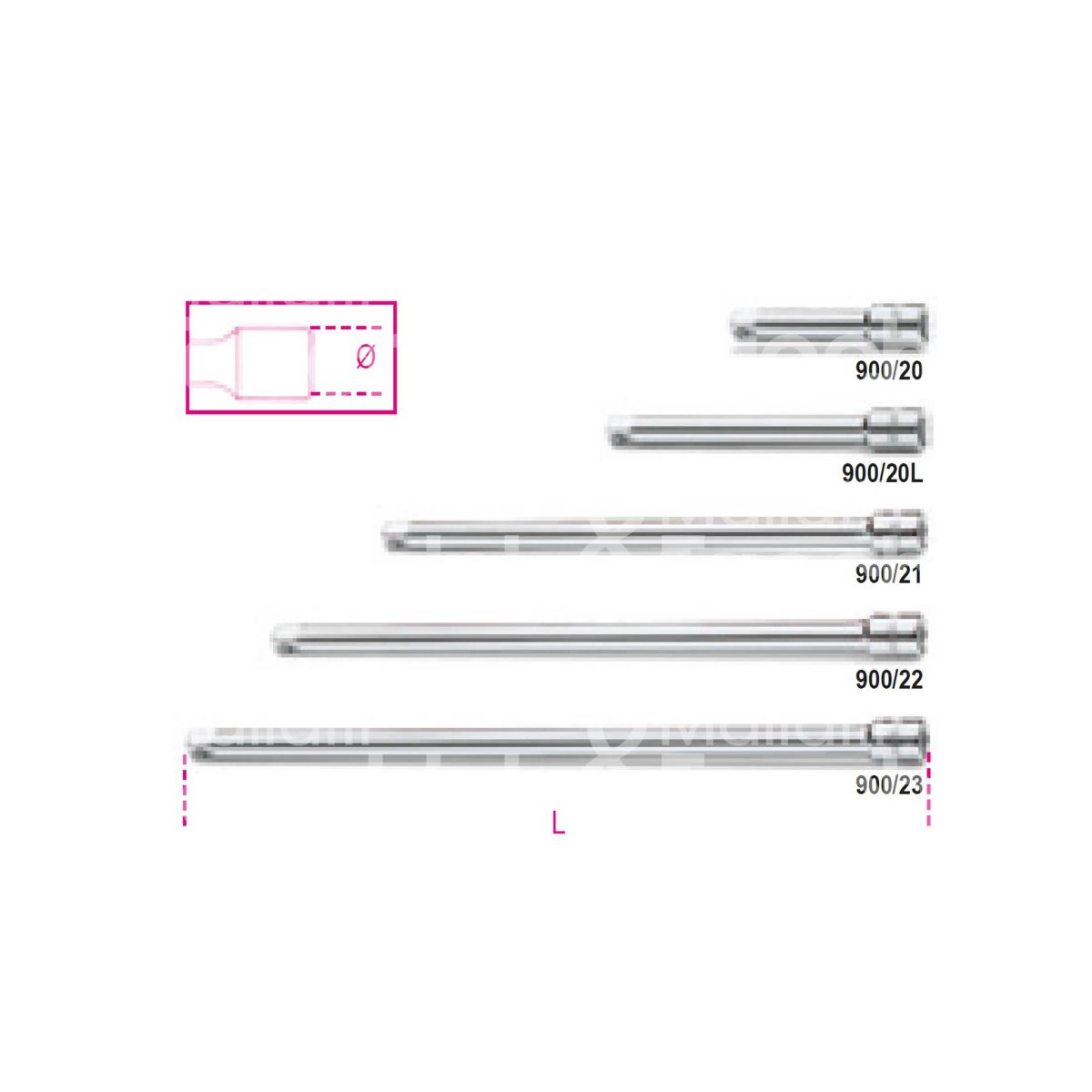 PROLUNGHE CON ATTACCHO QUADRO BETA ART. 900/... Attacco maschio 1/4" Attacco femmina 1/4"
