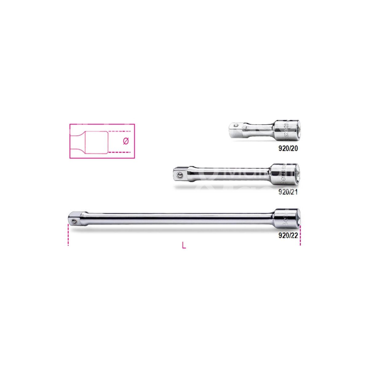 PROLUNGHE ATTACCO QUADRO BETA ART. 920/20 ART. 920/21 ART. 920/22 Attacco maschio femmina 1/2" Cromate