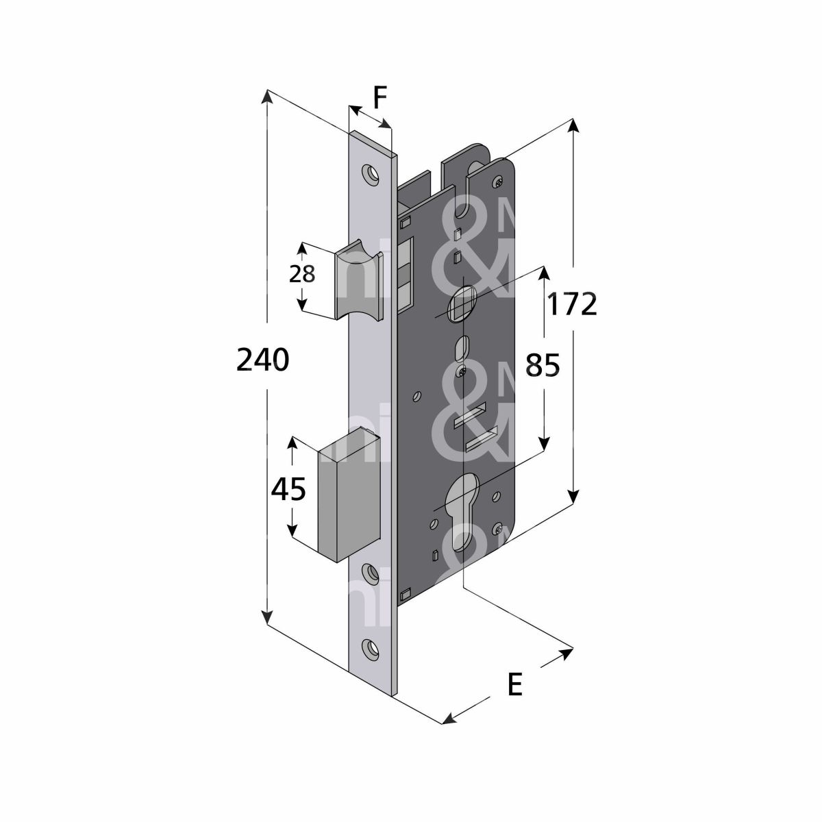 Welka 01570000 serratura patent bordo quadro e 70 int. man. 85 scrocco piÙ catenaccio ottonata