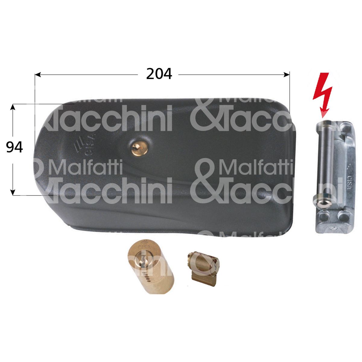 ELETTROSERRATURA Elettrika - 12V c.a. applicare doppio cilindro - catenaccio a gancio rotante