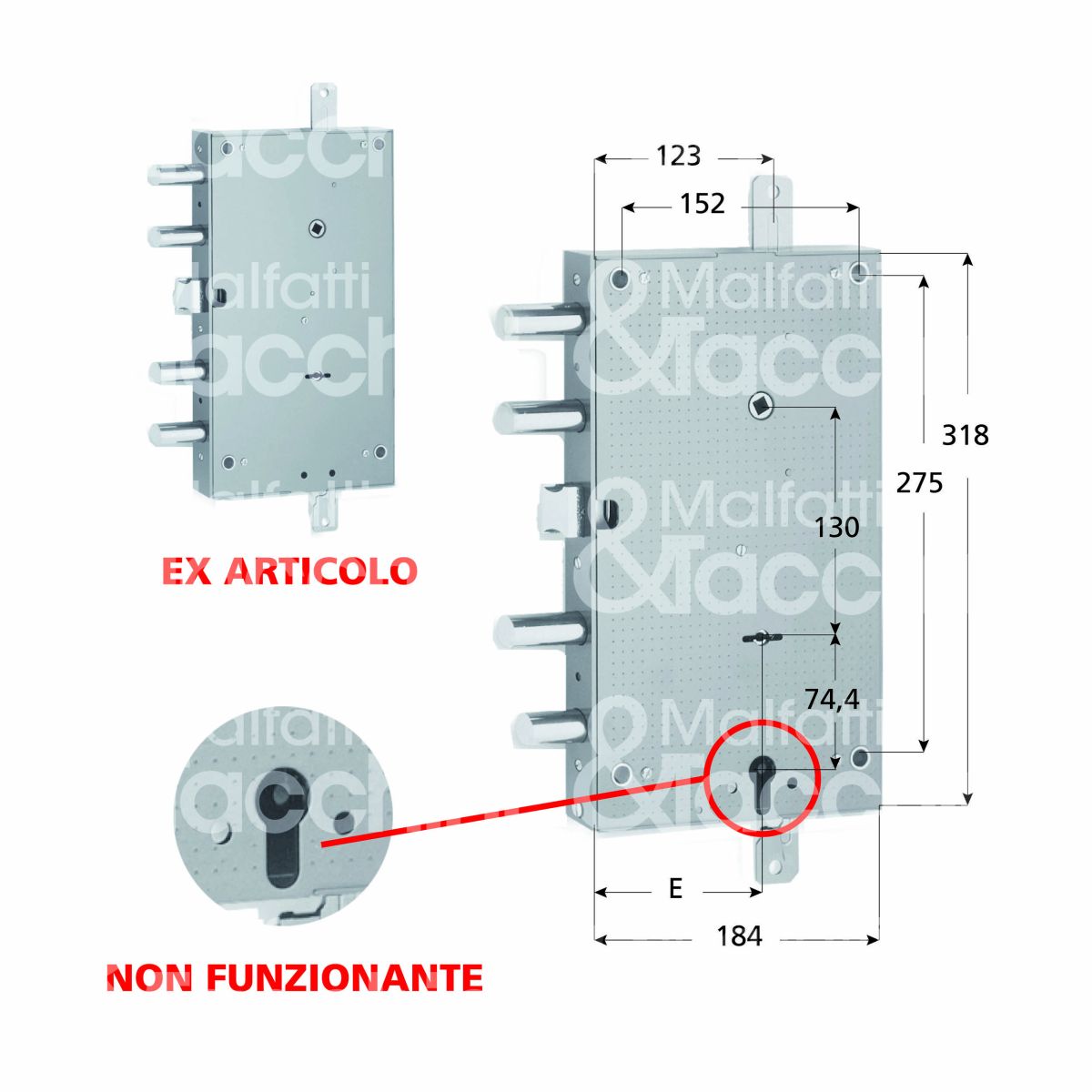 Fiam 11200000 serratura doppia mappa per blindata triplice e 105 ambidestra 4 catenacci piÙ scrocco sporg. 5