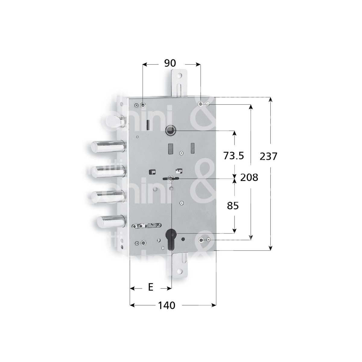 Fiam 8080505 serratura plurisistema con cilindro indipendente triplice e 68 ambidestra 4 catenacci piÙ scrocco e 1 servizio int. cat. 38 sporg. 5