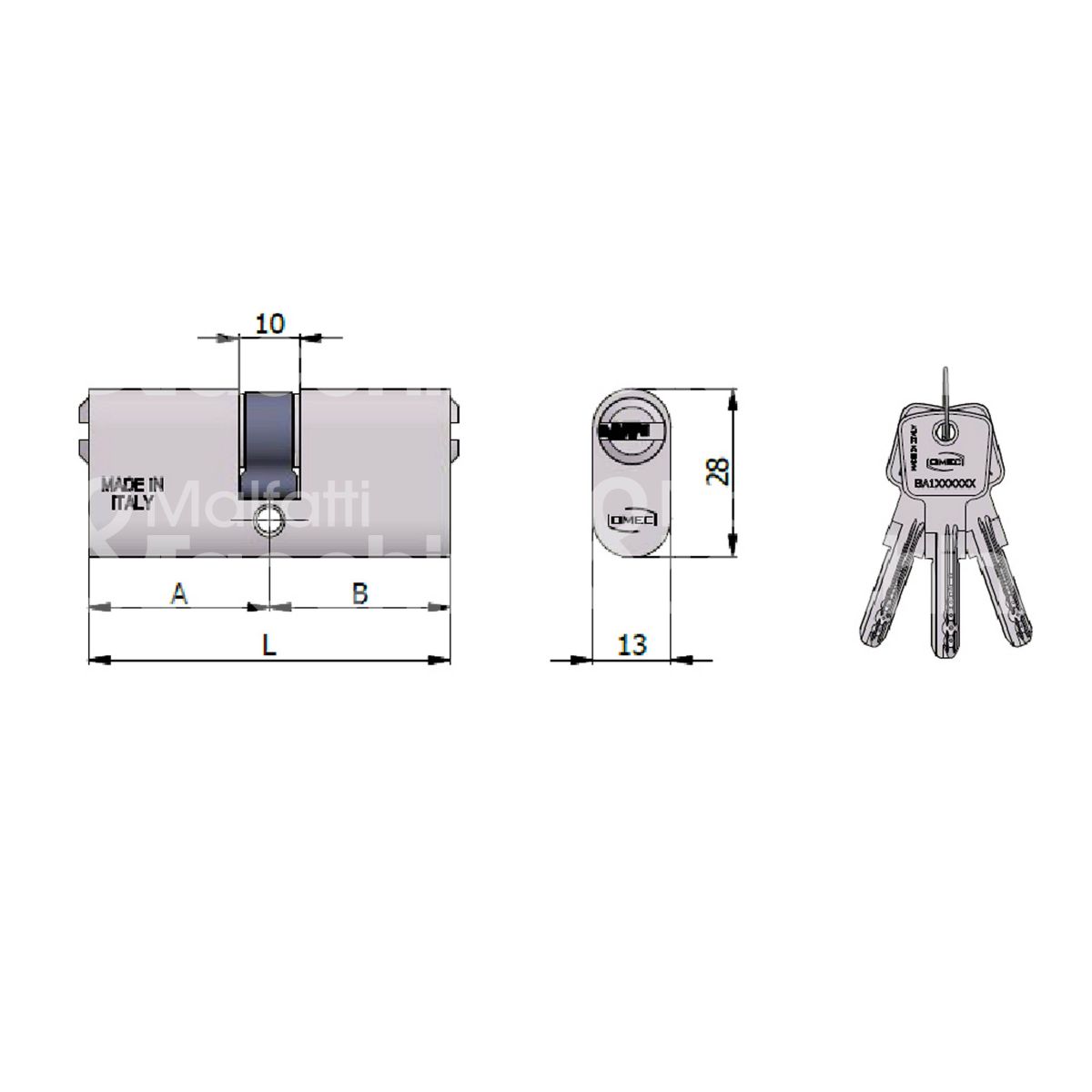 Omec 214006h cilindro ovale chiave/chiave 35 x 35 = 70 mm chiave punzonata cifratura kd nichel satinato