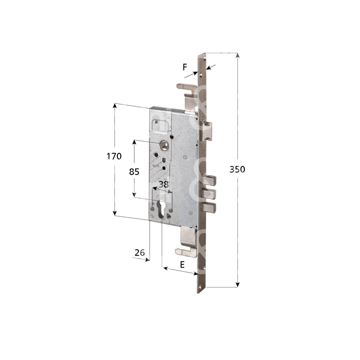 SERRATURA infilare triplice 2 mandate e scrocco predisposta per protettore Contropiastra in dotazione cilindro sagomanto non incluso Aste 06415 non comprese
