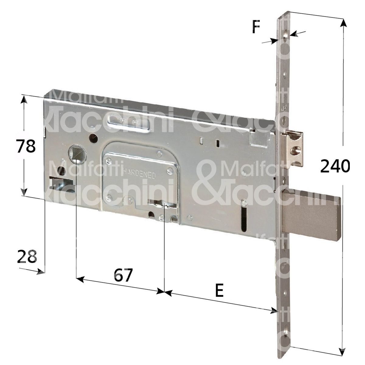 SERRATURA DOPPIA MAPPA per fasce - laterale 4 mandate e scrocco registrabile Front. INOX protezione antitrapano 3 chiavi 00100001