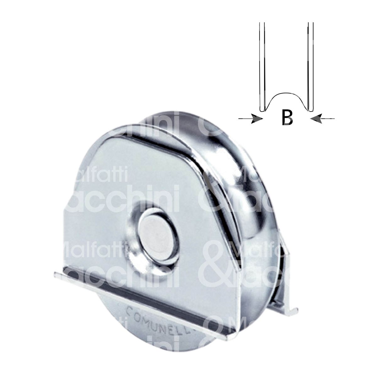 Comunello 332080 ruota gola semitonda con supporto art. 332-080 acciaio zincato Ø mm 80 l mm 20 - 1 cuscinetto portata kg 180