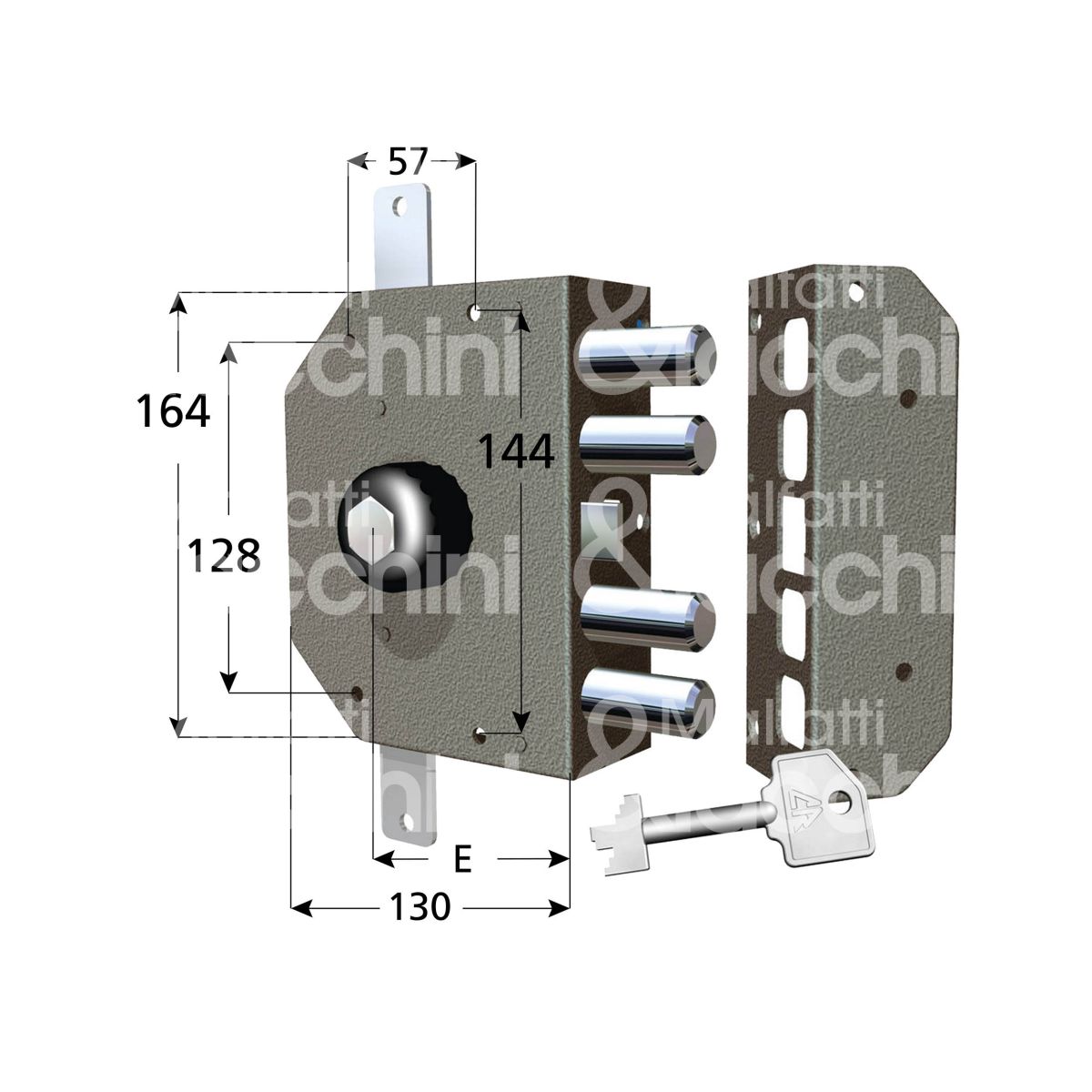 Cr 3250pdx serratura applicare pompa Ø 27 triplice e 60 4 catenacci piÙ scrocco int. fiss. 57 x 144 x 128