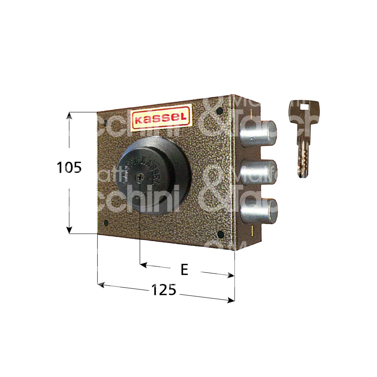 Kassel 2002 serratura applicare punzonato Ø 35 laterale e 65 3 catenacci int. fiss. 104 x 85
