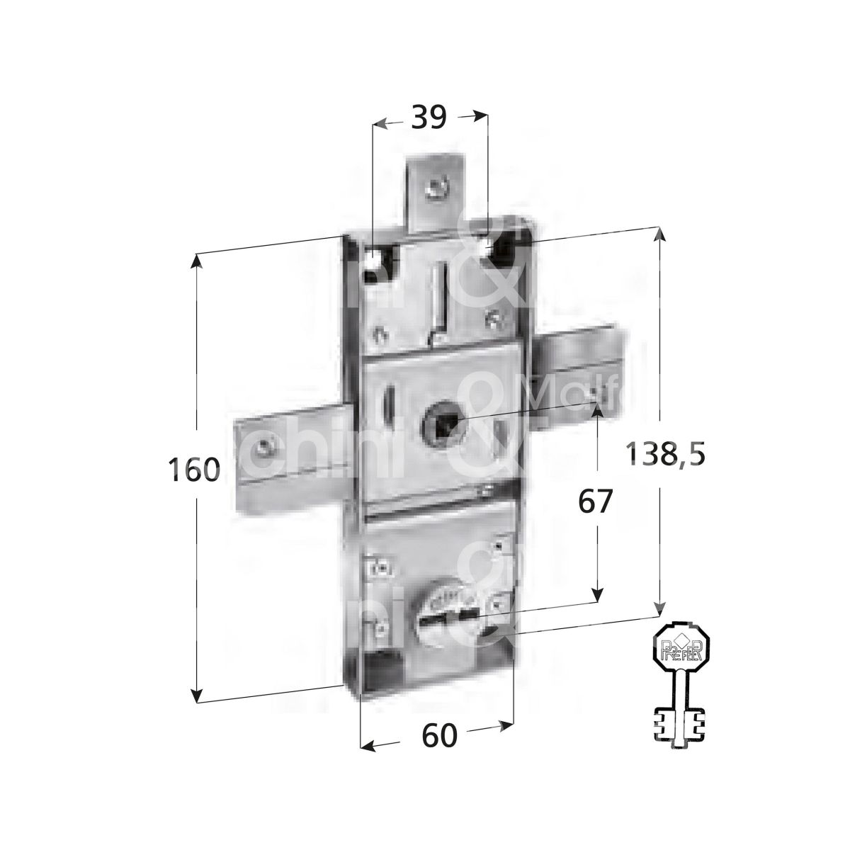 Prefer 8653 serratura per basculante triplice foro doppia mappa / chiave doppia mappa cifratura kd