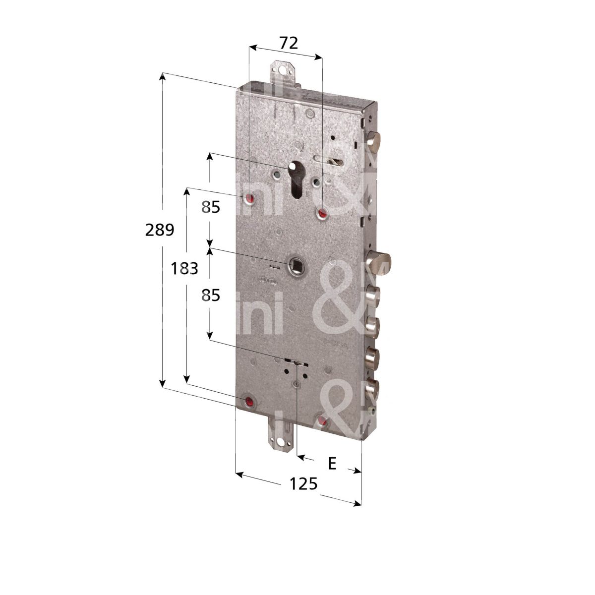 Cisa 57765280 serratura plurisistema con cilindro dipendente triplice e 64 ambidestra 4 catenacci piÙ scrocco e 1 servizio int. cat. 28 sporg. 3,5