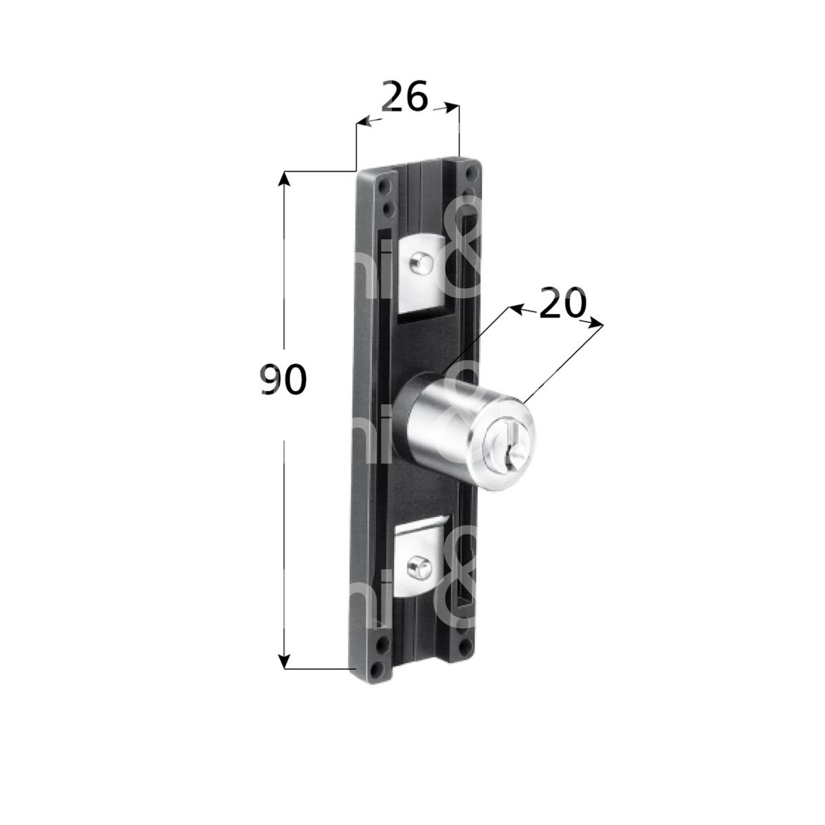Meroni 2171ne serratura per anta a stringa Ø 16,5 lunghezza mm 20 ambidestra chiave piatta kd rotazione 360° 2 estrazione nero