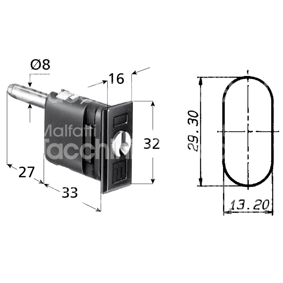 Meroni 2335ne serratura per cassetto con perno lunghezza mm 33 ambidestra chiave piatta kd rotazione 360° 2 estrazione nero