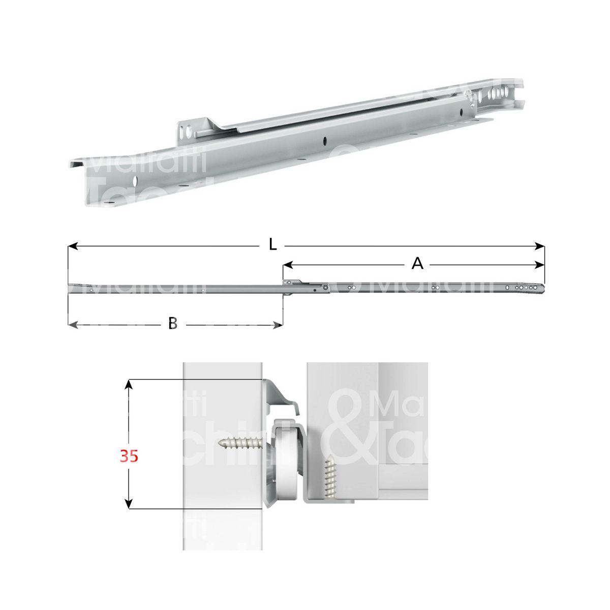 Omge 400130 coppia guida cassetto art. 400130 ferro bianco portata cp kg 25 estrazione parziale a mm 300 b mm 222 l mm 522