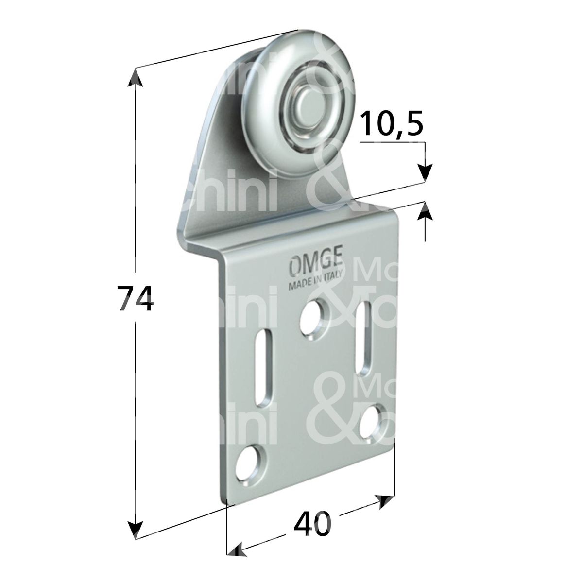 Omge 152 carrello per scorrevoli art. 152 roll-ge 150 1 ruote materiale acciaio Ø mm 24 fissaggio con piastra portata kg 25 per binario art. 20
