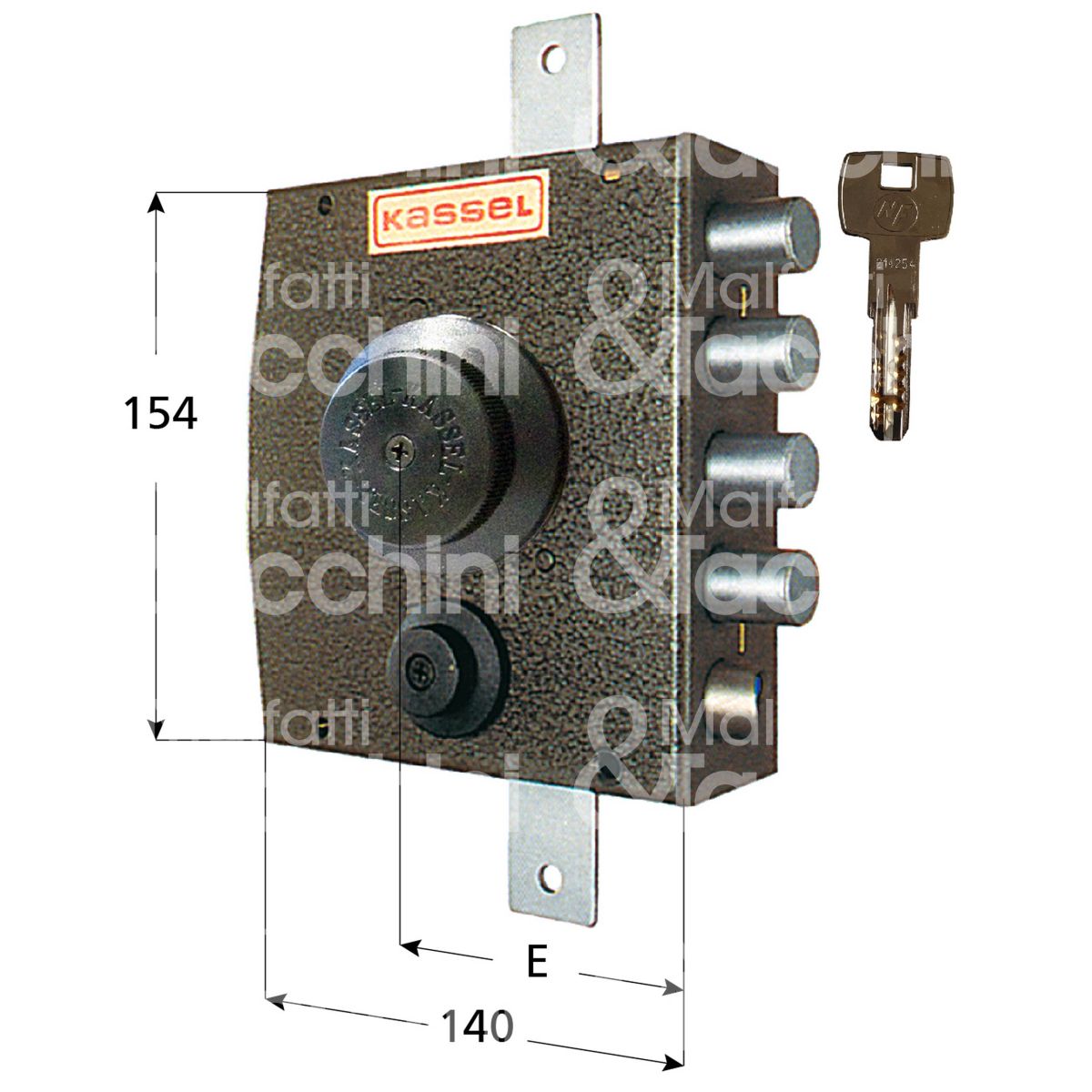 Kassel 2151 serratura applicare punzonato Ø 35 laterale e 65 4 catenacci piÙ scrocco int. fiss. 90 x 140