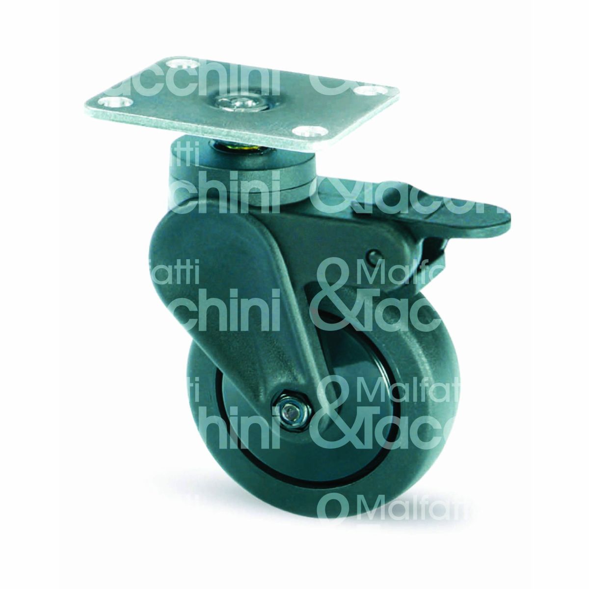Valsecchi 173bis075 ruota art. 173bis poliuretano termoplastico tpu con freno Ø mm 75 tipo fissaggio piastra misura mm 70 x 58 - h mm 110 portata kg 60