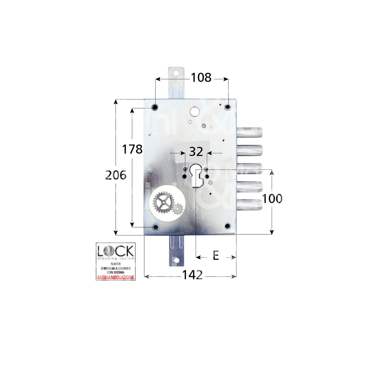 Serie HEAVY CYLINDRO Serr. triplice a cilindro applicare 3 mandate ad ingranaggi Maniglie in folle Kit per montaggio cilindro DISPOSITIVO ANTI-EFFRAZIONE LOCK BLOCKING SYSTEM Mostrine non incluse