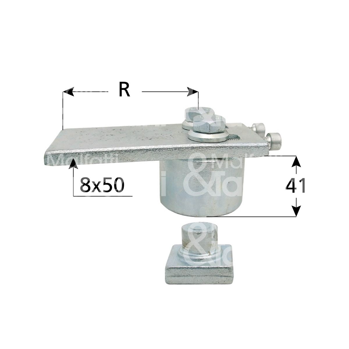 Ibfm 838 cardine superiore per cancelli art. 838 acciaio zincato regolabile si Ø mm 50 l mm 110 x h mm 33,5 portata 500 kg
