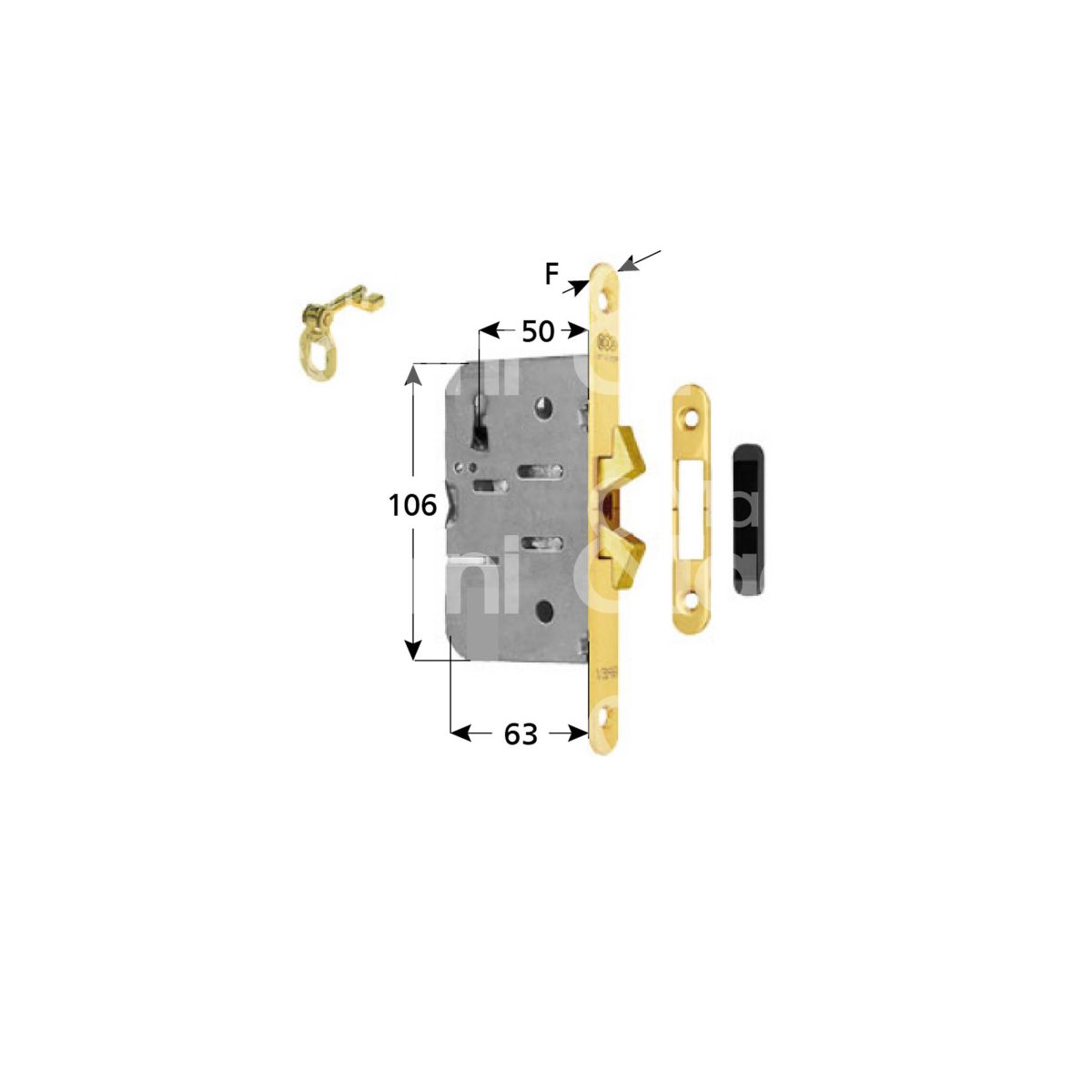 Agb b087715003 serratura infilare a gancio doppio e 50 ambidestra per porte interne ottonata foro patent