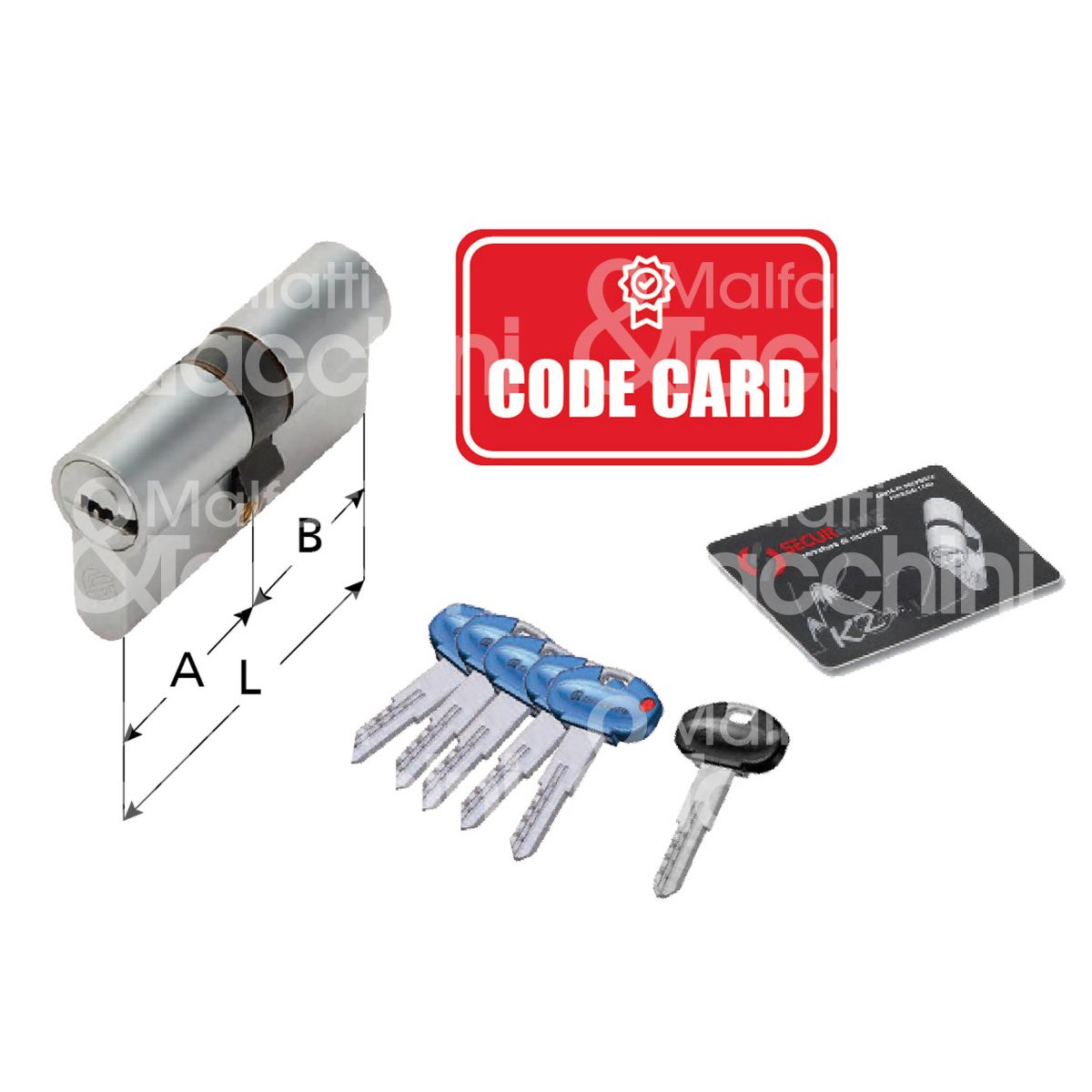 CILINDRO DI SICUREZZA K2-C Cromo satinato Antitrapano 10 perni 5 chiavi sigillate + 1 cantiere Code Card