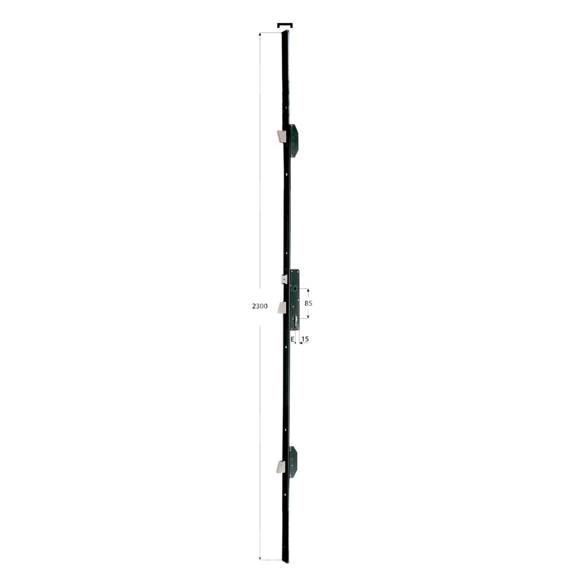 SERRATURA INFILARE "ELECTA" MULTIPUNTO Ambidestra 1 mandata Scrocco reversibile e regolabile Frontale a U 24x6 verniciato nero rasabile alto e basso altezza 2300 rasabilità sup. 350 rasabilità inf. 120 scrocco reg. 3,5 - 11 Cilindro sagomato non compreso