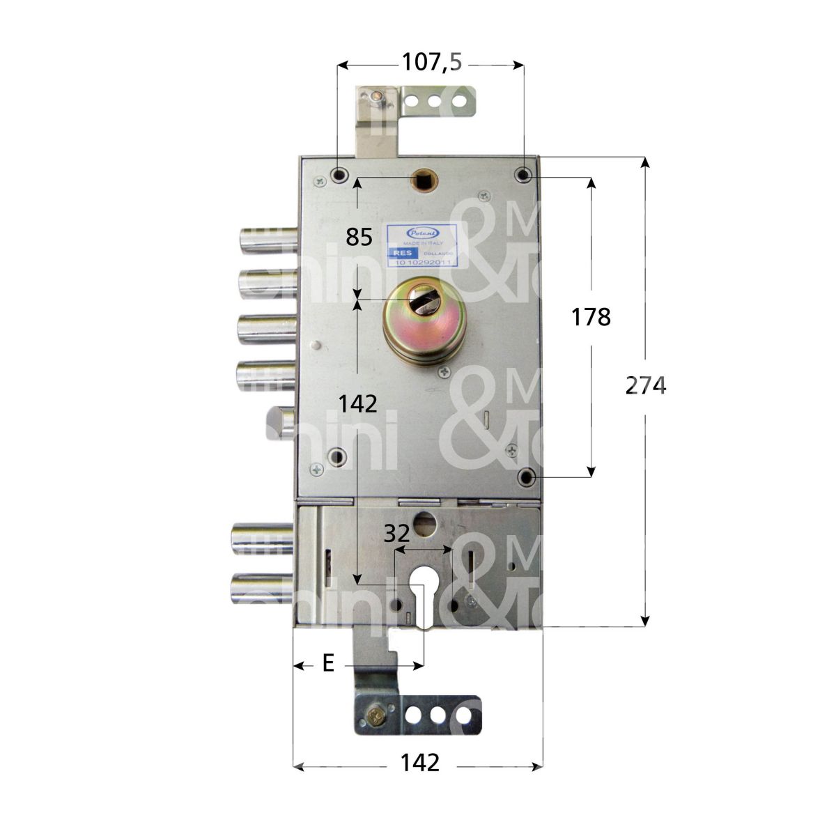 Potent 1970/28d serratura per blindata a doppio cilindro indip. triplice e 73 dx 4 catenacci piÙ scrocco e 2 servizio int. cat. 28 sporg. 3,5