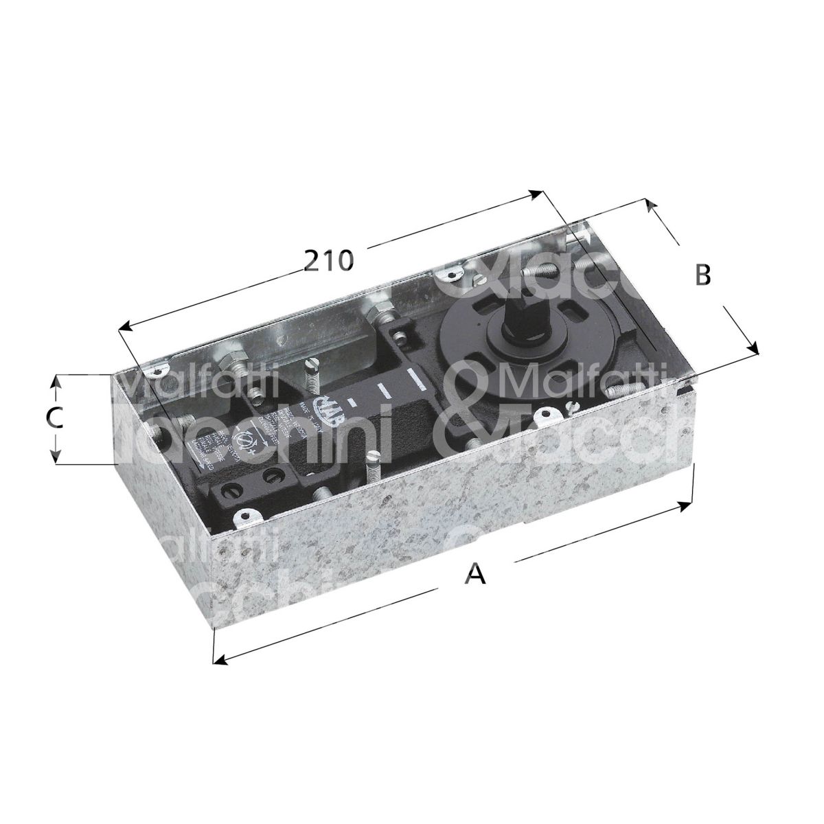 CHIUDIPORTA A PAVIMENTO serie 7100 SOLO CORPO per porte largh. max 850 - con custodia a murare - Piastra AC530 da ordinare a parte