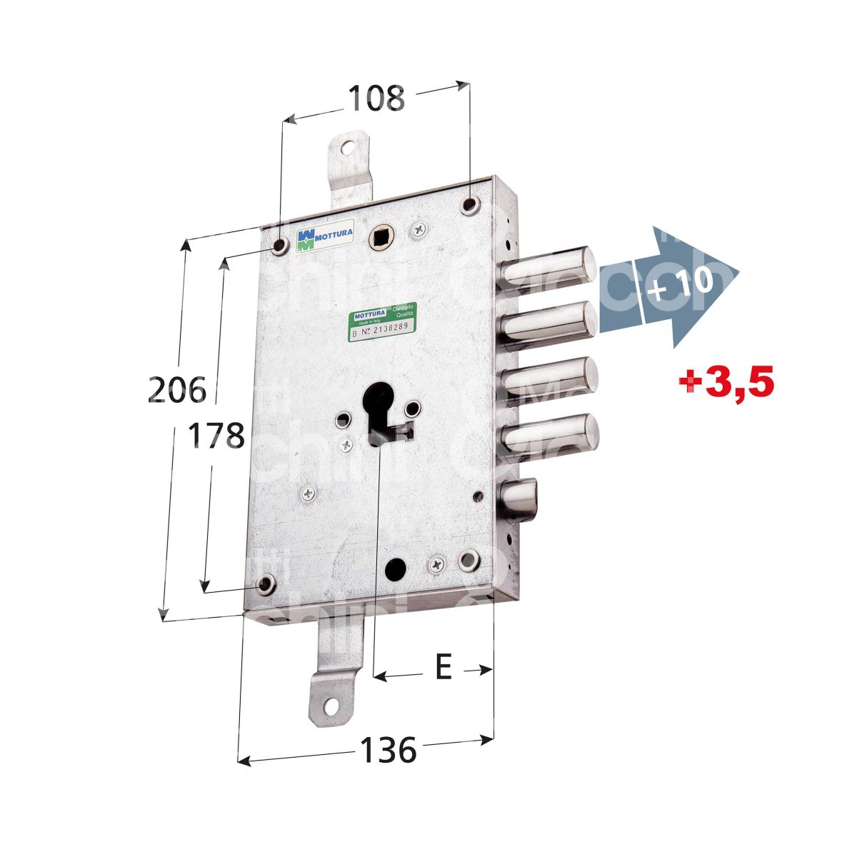 Mottura 898571d5an serratura blindata a cilindro serie ad triplice e 63 dx 4 catenacci piÙ scrocco int. cat. 25 sporg. 13,5