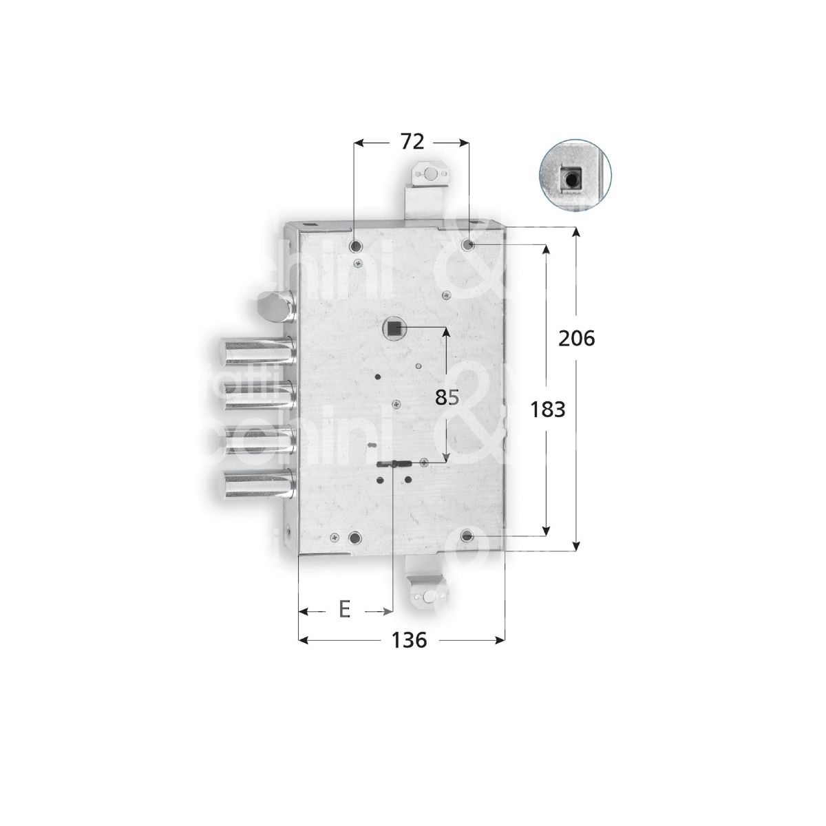 SERRATURA MONOSISTEMA DOPPIA MAPPA Serie RCI 4 mandate e scrocco reversibile Fissaggio con fori passanti e dadi in gabbia 3 chiavi incluse Aste non comprese