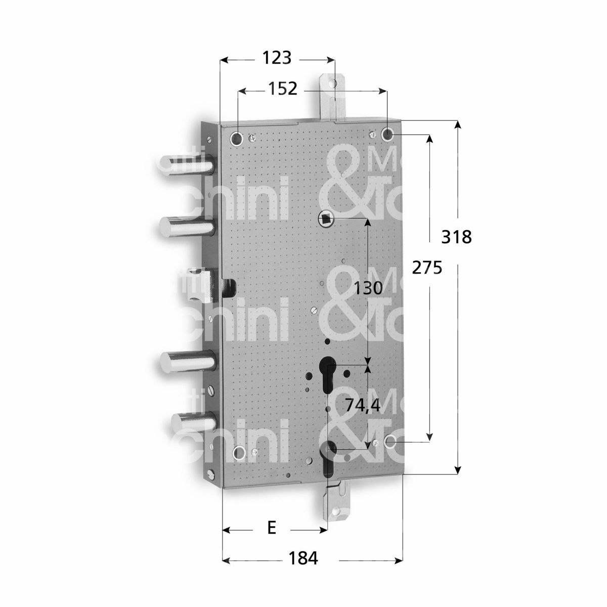 Fiam 11200025a serratura per blindata a doppio cilindro indip. triplice e 105 ambidestra 4 catenacci piÙ scrocco e 1 servizio sporg. 5