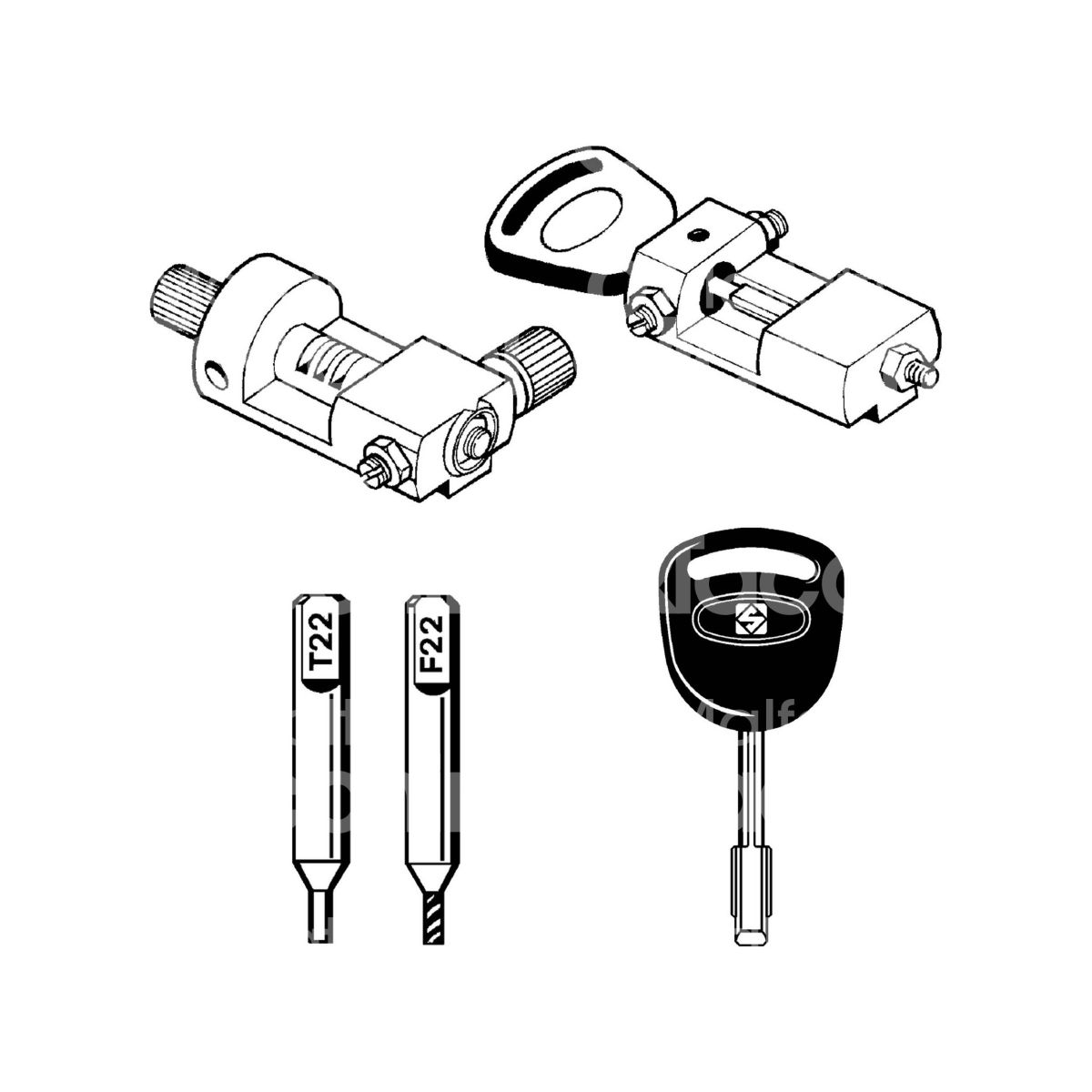 SET DISPOSITIVO A CODICE Per macchina duplicatrice Matrix S-XS-SLX Tastatore T22 Fresa F22 6 chiavi FO21P