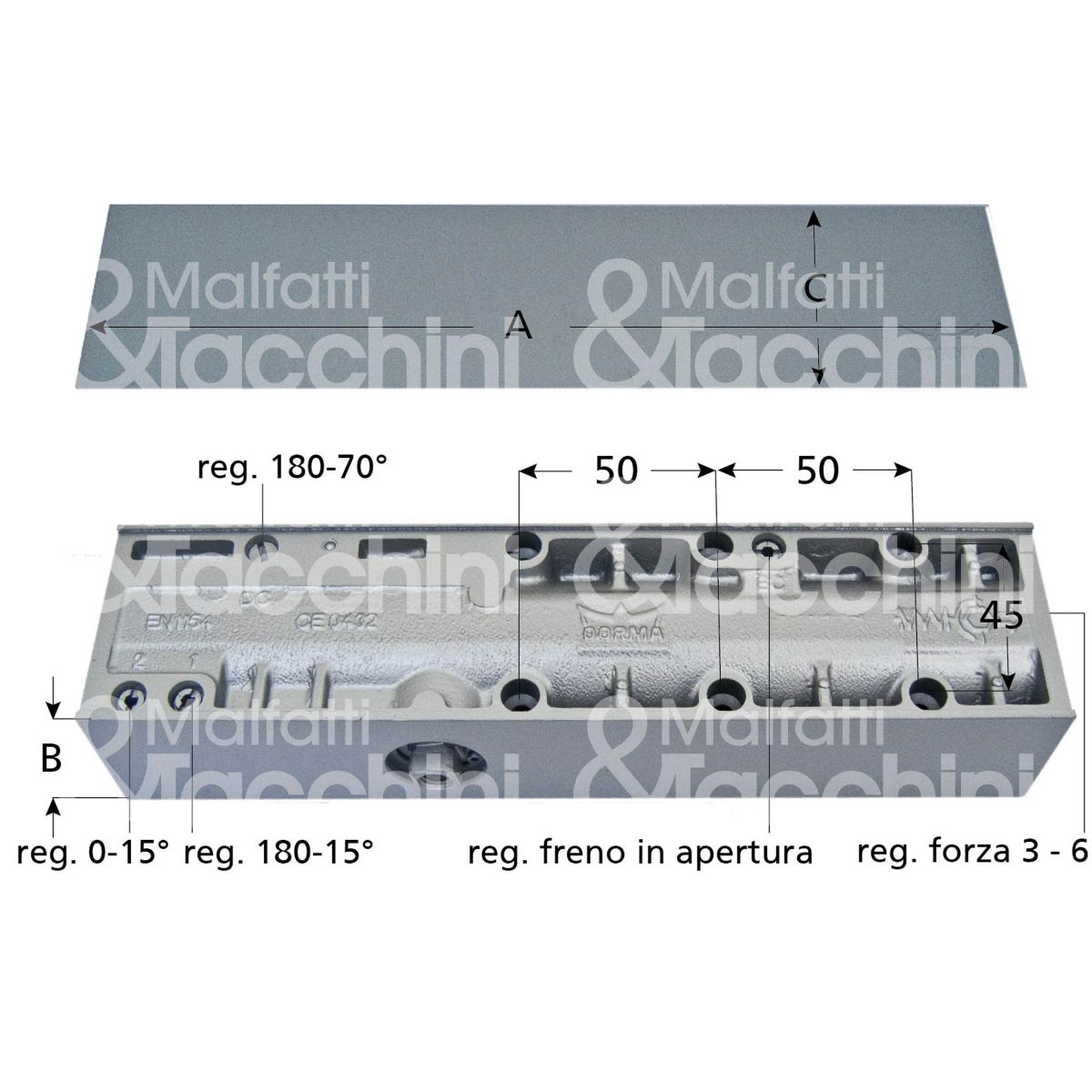 CHIUDIPORTA TS 83 BCA/DC SOLO CORPO  per porte largh. max 1400 - 2 velocità di chiusura con valvole indipendenti freno in apertura regolabile e ritardo di chiusura