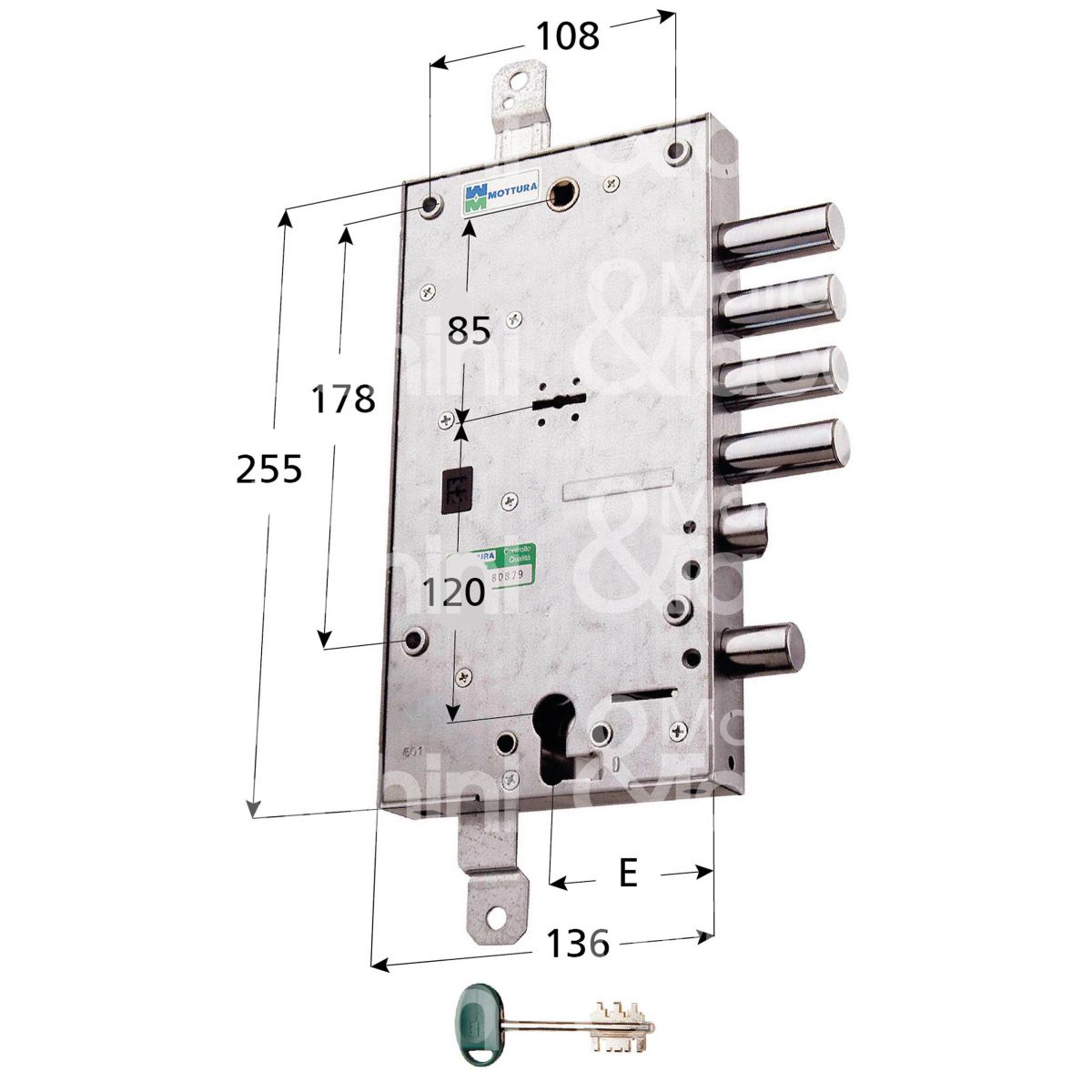 Mottura 545872810 serratura plurisistema con cilindro indipendente triplice e 63 ambidestra 4 catenacci piÙ scrocco e 1 servizio int. cat. 28 sporg. 13,5