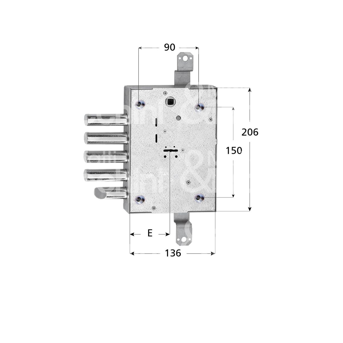 Fiam 26080832 serratura doppia mappa per blindata triplice e 63 ambidestra 4 catenacci piÙ scrocco int. cat. 32 sporg. 8