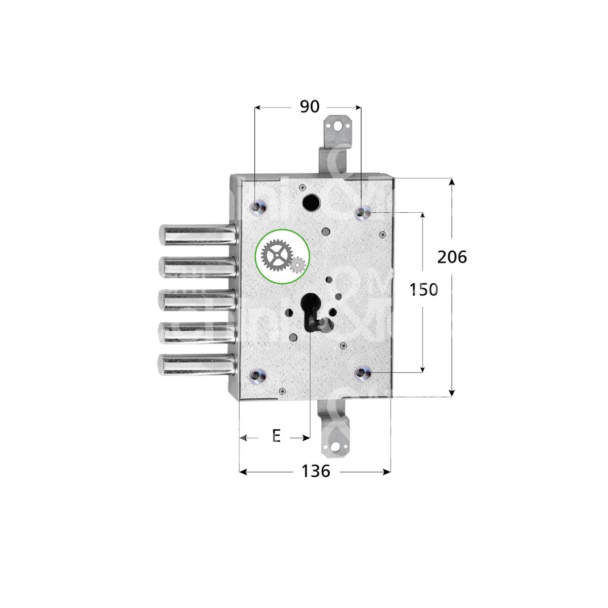 SERRATURA MONOSISTEMA A CILINDRO art. 2662 Cilindro sagomato non incluso Aste non comprese movimento ingranaggi