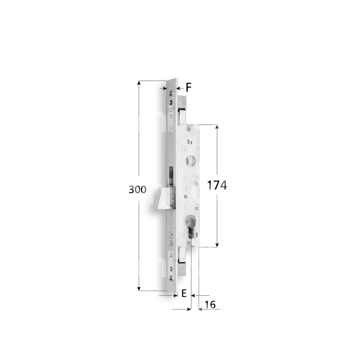 SERRATURA per montanti triplice art. 743 catenaccio basculante 1 mandata Coppia attacchi aste filettate M8 Corsa aste 25 mm Cilindro non incluso Aste non comprese