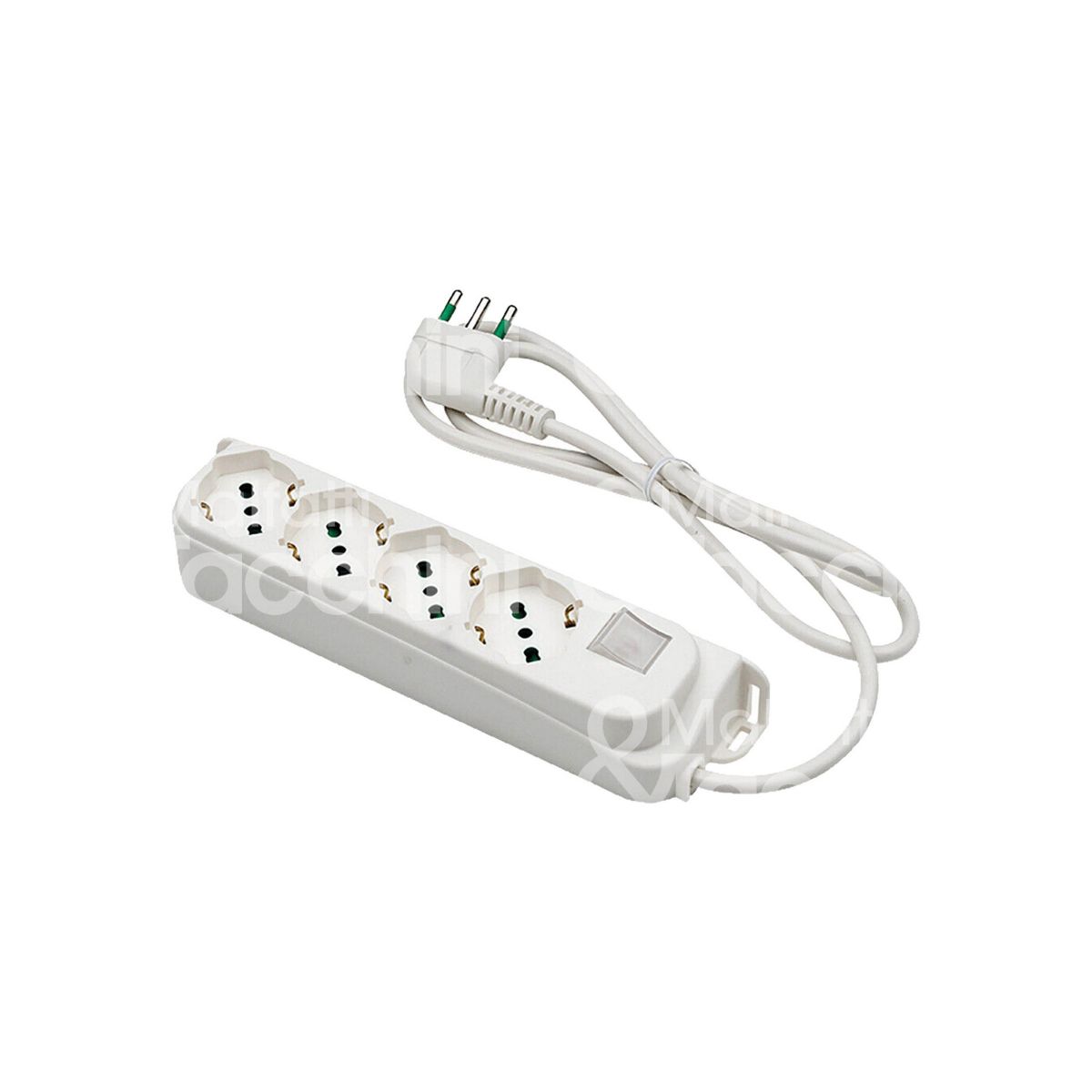 MULTIPRESA  OMEGA 4 prese bipasso italo/tedesche 2P+T 16A Cavo 1,5 metri Spina a squadra italiana 2P+T 16A + Interruttore bipolare luminoso