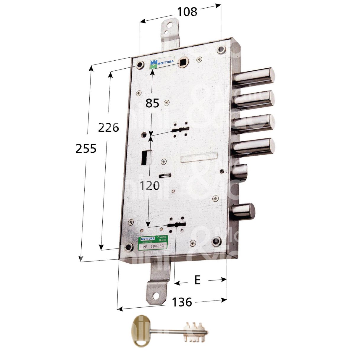 Mottura 5458928d serratura doppia mappa per blindata plurisistema triplice e 63 dx 4 catenacci piÙ scrocco e 1 servizio int. cat. 28 sporg. 3,5 con servizio indipendente
