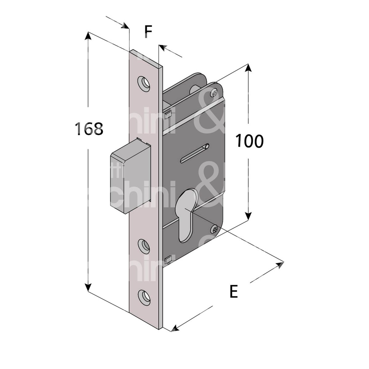 SERRATURA PER MONTANTI 1 mandata maggiorata 17 mm Acciaio nichelato cilindro sagomato non compreso