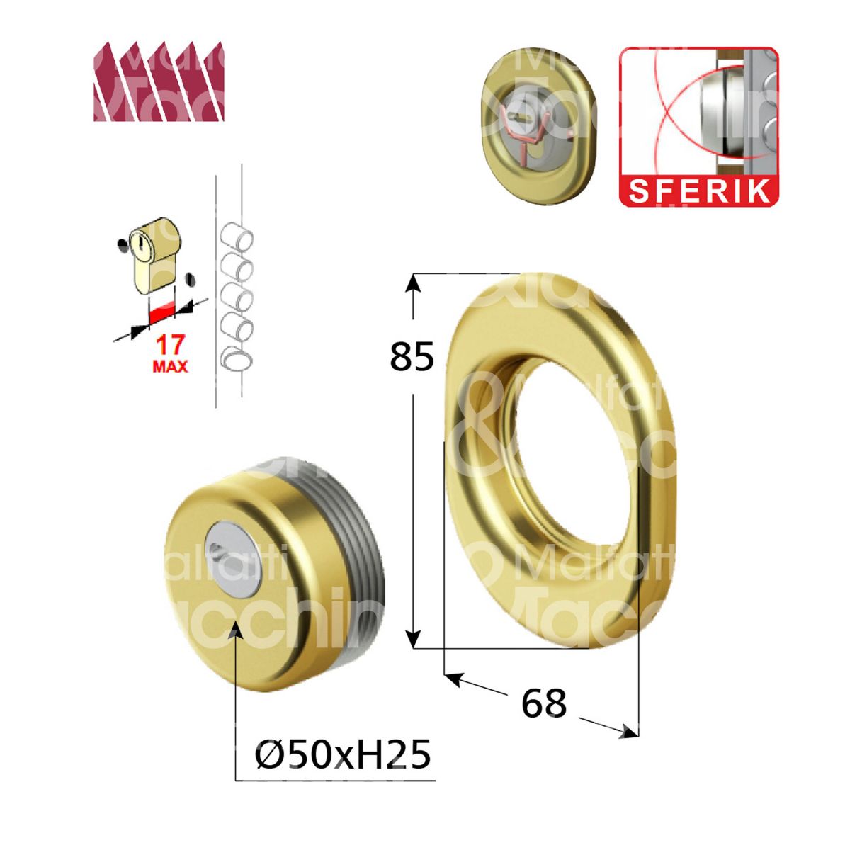 Disec bkd250ol protettore monolito interasse fori mm 38 misura Ø 54 profondita' mm 25 ottone lucido