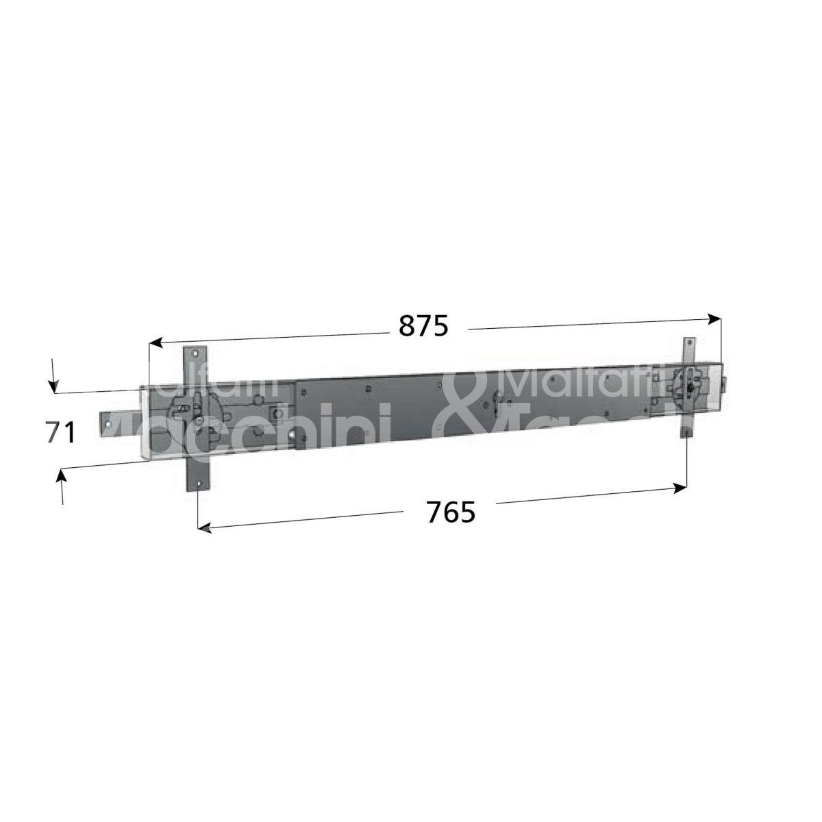 Prefer bsp3001z spranga orizzontale per basculante ambidestra foro sagomato 6 punti di chiusura misura 875 x 71