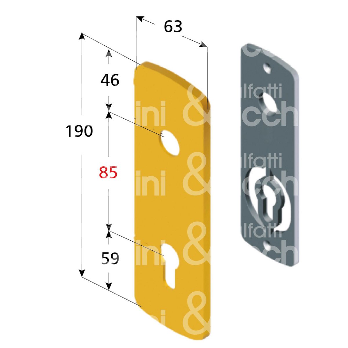 Disec ki1903pcr placca foro maniglia piÙ cilindro cromo lucido interasse 85 mm 63 x 190